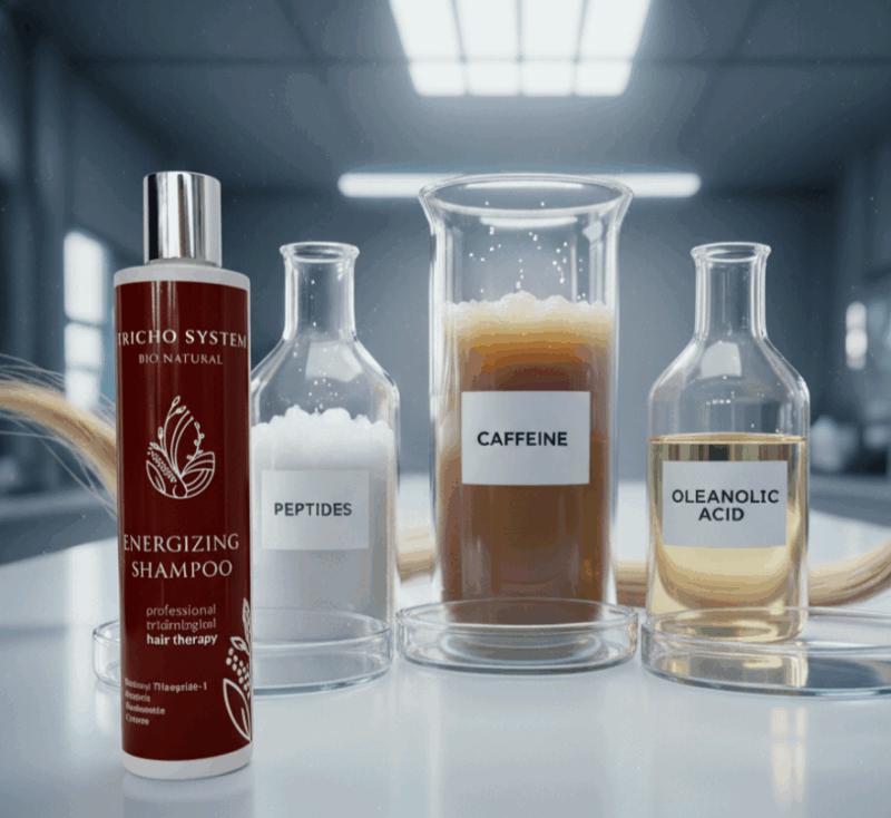 Przyjrzymy się trzem bohaterom w walce o mocne włosy: peptydom, kofeinie i kwasowi oleanolowemu. To właśnie oni, działając u źródła problemu, mają realną moc, by odmienić kondycję Twojej fryzury.