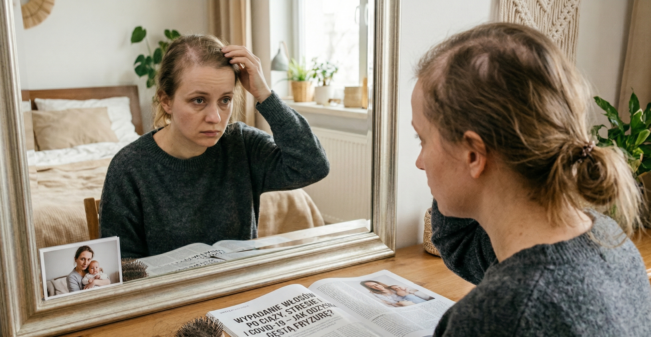 Po COVID-19: To reakcja organizmu na stan zapalny i „szok” energetyczny po chorobie. Włosy wypadają, aby zrobić miejsce dla nowych, ale potrzebują wsparcia, by odrosnąć silniejsze. 🔬